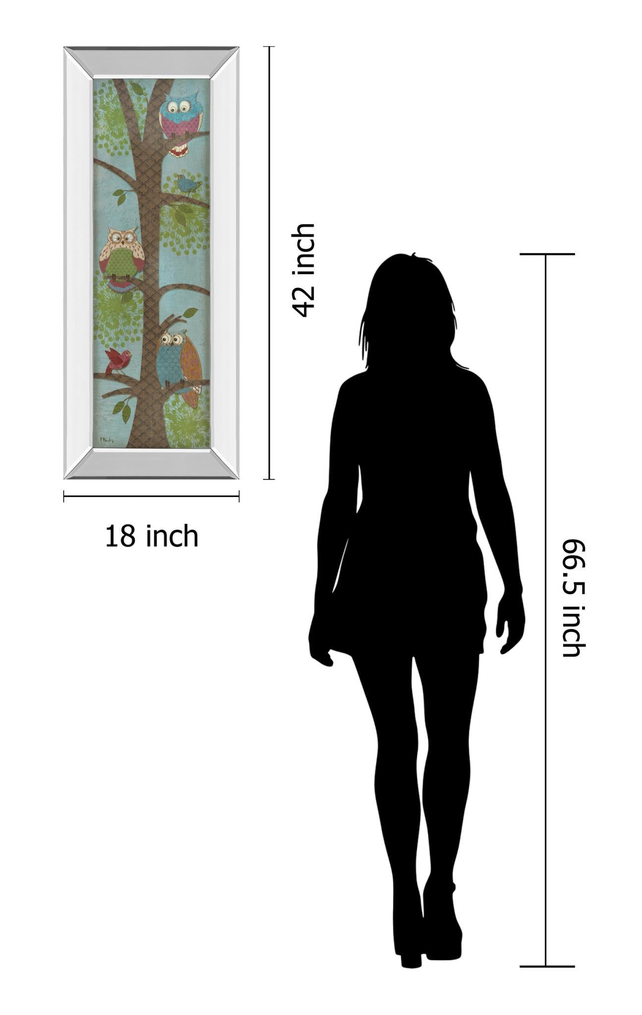 Fantasy Owls Panel Il By Paul Brent - Mirror Framed Print Wall Art - Blue