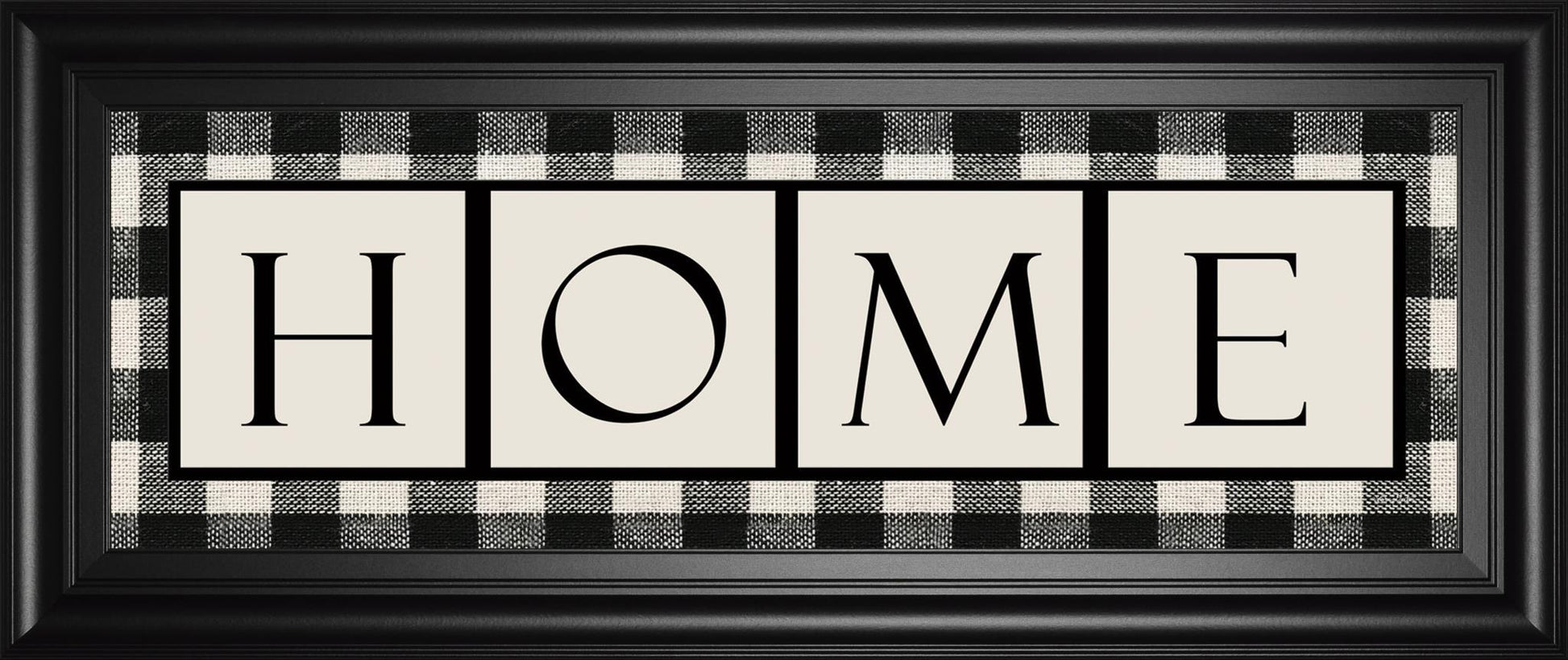 Invite warmth and rustic charm into your space with this framed wall art featuring the word "HOME" in bold black letters. Set against a classic black and white buffalo plaid background, the piece is encased in a sleek black frame with premium real glass, offering both durability and style. Perfectly sized for living rooms, entryways, or kitchens, this horizontal artwork effortlessly blends farmhouse aesthetics with modern elegance. Crafted with attention to detail, it brings a cozy, welcoming atmosphere that makes any house feel like home.