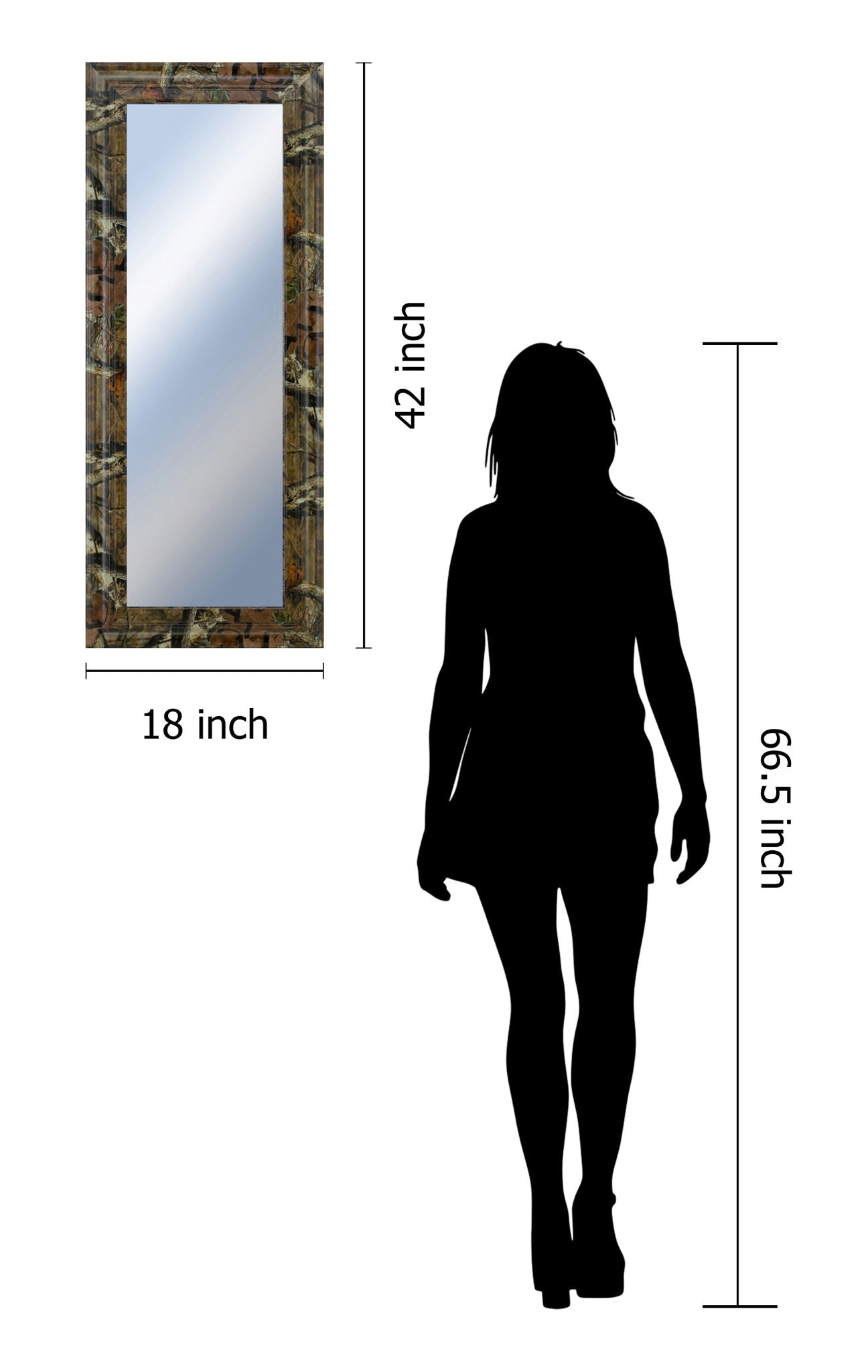 Transform your space with the Rustic Camouflage Wall Mirror, designed to bring a touch of nature's tranquility indoors. Its wide 3-inch frame, adorned with a detailed camouflage pattern in earthy browns, greens, and beiges, adds a rugged yet refined charm to any room. The high-quality, distortion-free glass reflects your surroundings with crystal clarity, making it an ideal addition to living rooms, bedrooms, bathrooms, or offices. Crafted from premium MDF and equipped with sturdy hanging hardware, this mirror offers both durability and style. Embrace the warmth of traditional design combined with the spirit of the outdoors, creating a timeless piece that complements rustic and natural décor themes effortlessly.