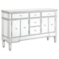 This mirrored accent cabinet has plenty of storage and panache. Fashioned from a combination of materials, it brings modern appeal and convenience to the home. It features birchwood and MDF construction in a silver finish to match the lustrous mirrored accents. Nine mirrored drawers with crystal hardware feature plenty of storage capabilities for all your needs. It's a fine addition to a modern styled living room or entertainment room.