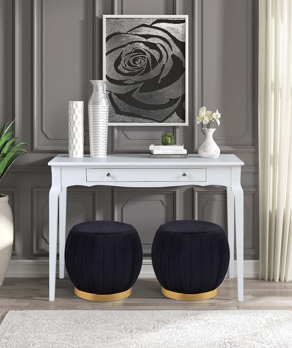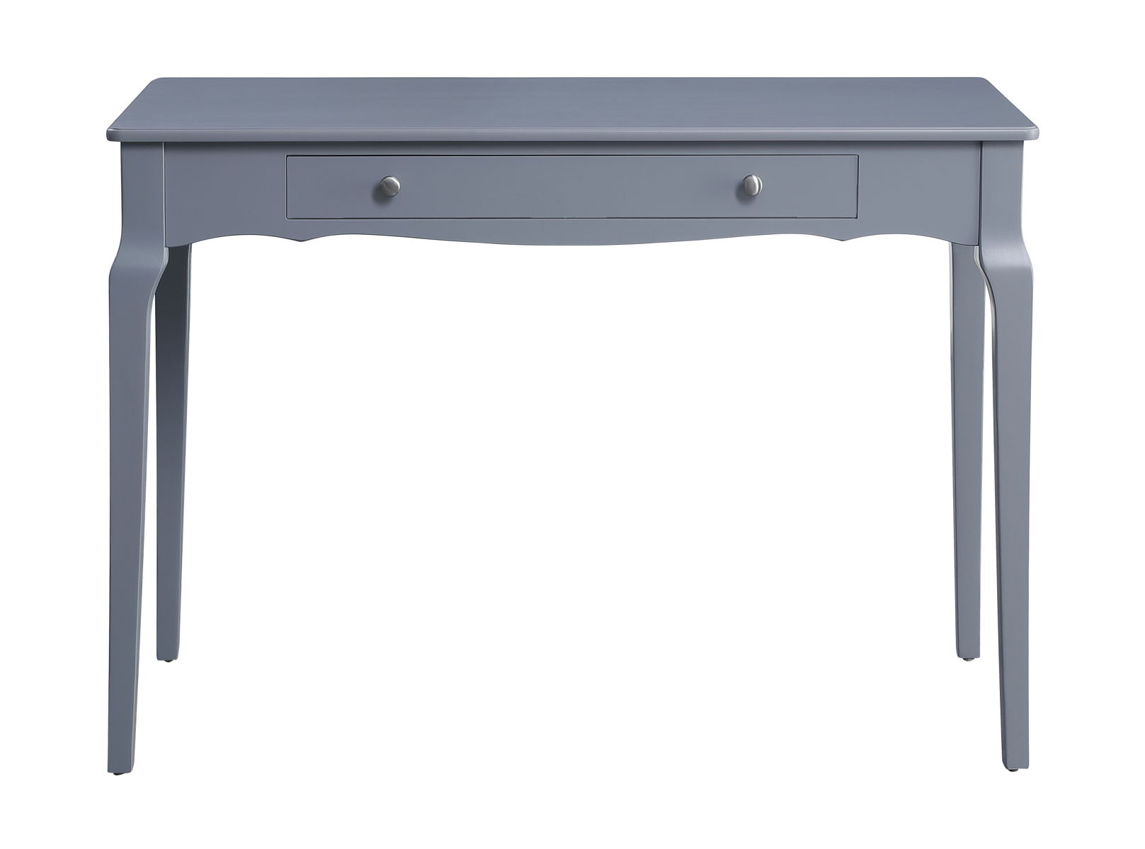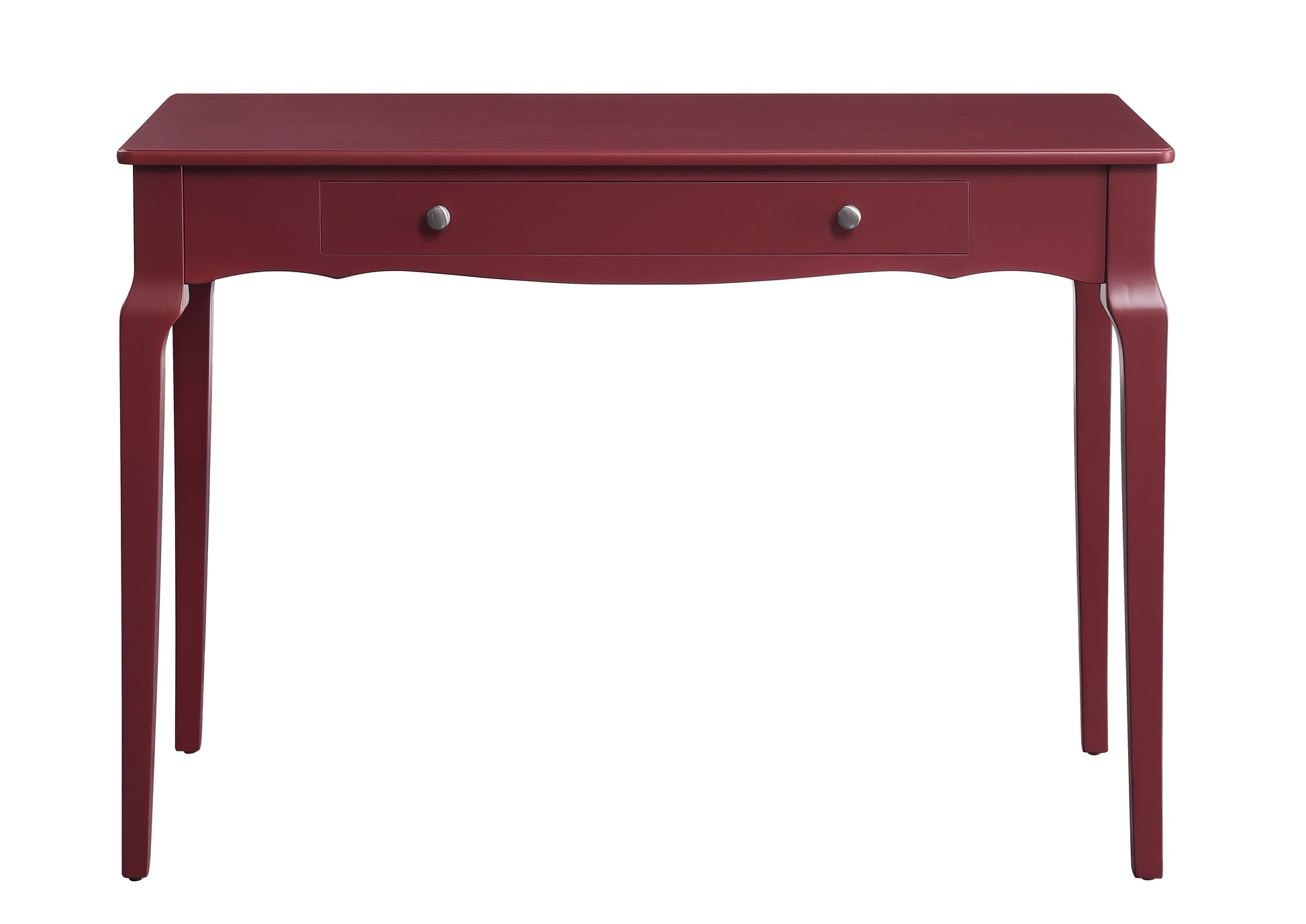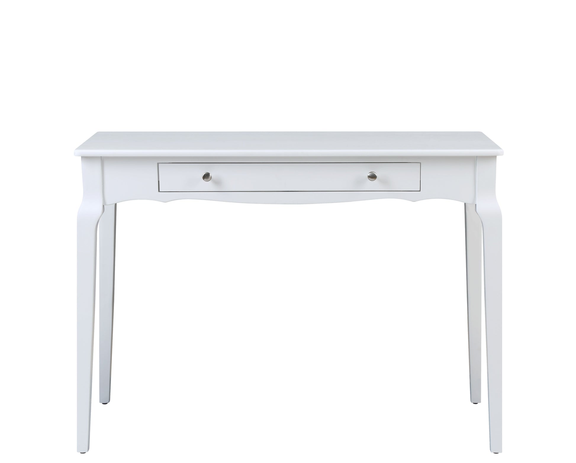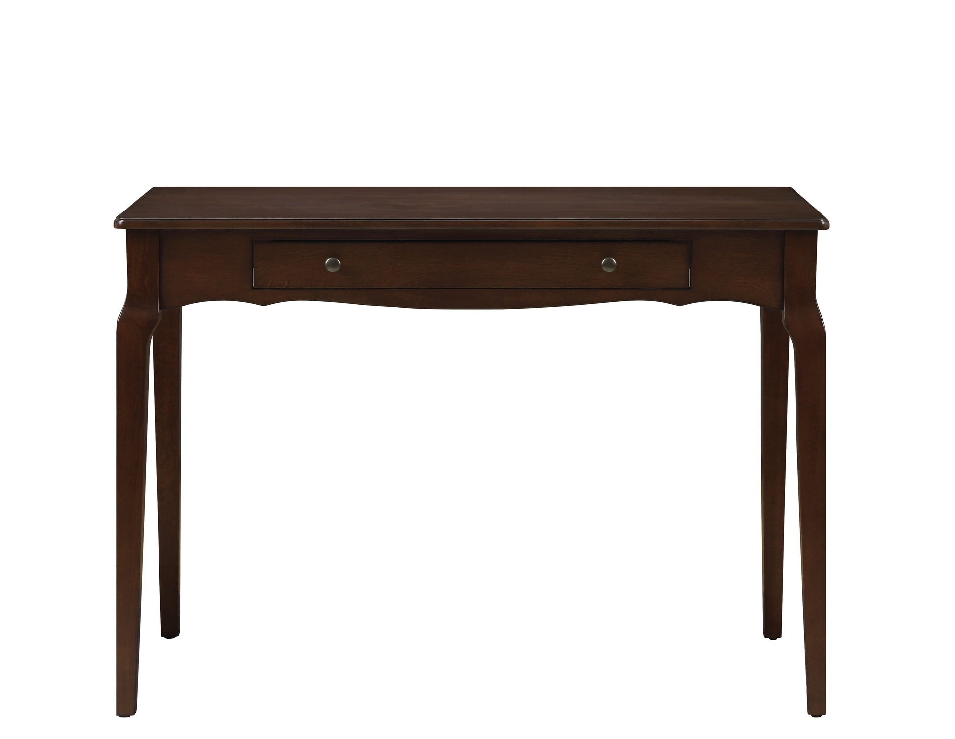 Classic and timeless without being garish. The wooden desk has gently curving details on the aprons and legs for ornate, traditional feel while a attractive finish all over the frame shows it's elegant silhouette. The broad rectangular top creates a ample workplace for you. Under the table top, the center drawer is accented by two round knobs for both availability and aesthetic.