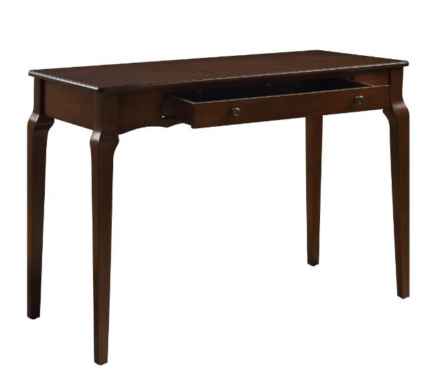 Classic and timeless without being garish. The wooden desk has gently curving details on the aprons and legs for ornate, traditional feel while a attractive finish all over the frame shows it's elegant silhouette. The broad rectangular top creates a ample workplace for you. Under the table top, the center drawer is accented by two round knobs for both availability and aesthetic.