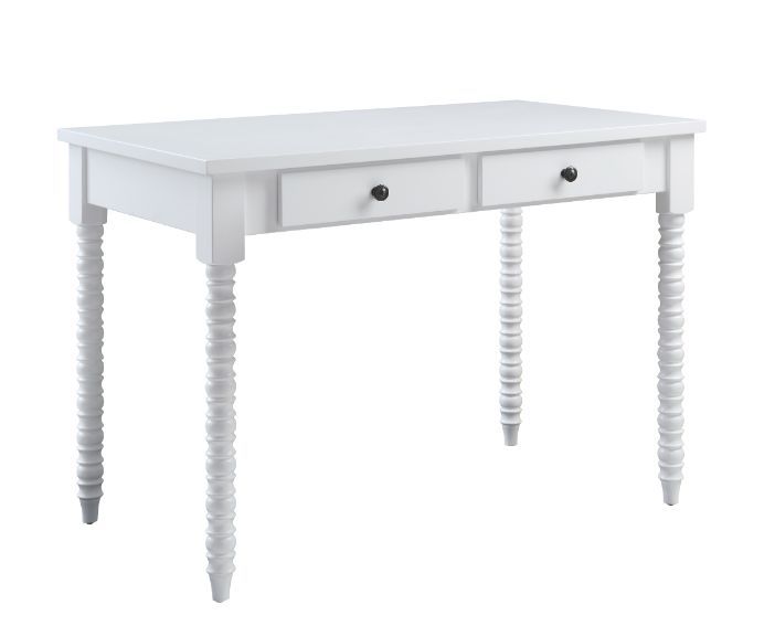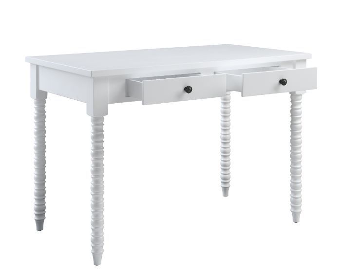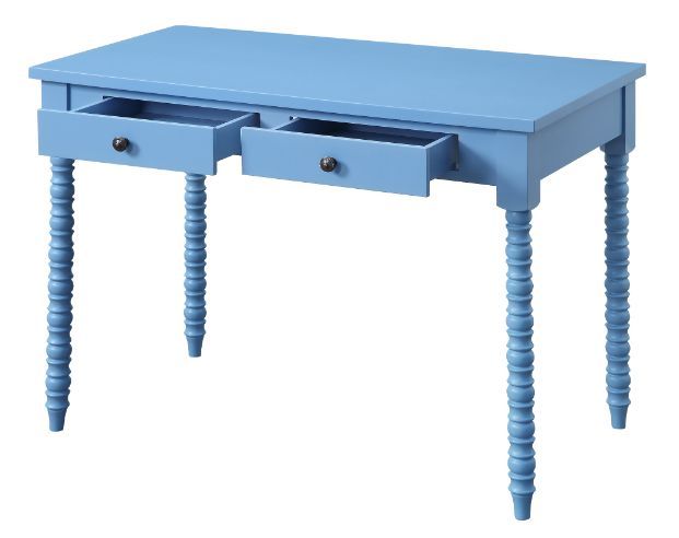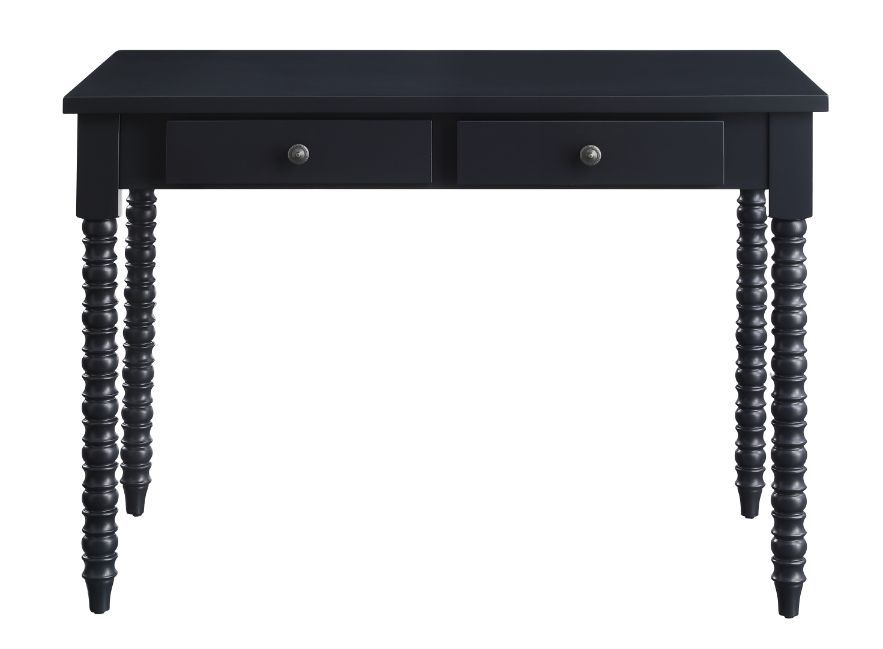 It's traditional look and briliant finish will fill your workplace with feelings of warmth and comfort. Found atop a wooden frame with ornate carvings , the classic style desk is graced with elaborately turned legs. Two storage drawers help you organize all office supplies and round knobs on the drawer fronts enhance it's vintage charm. Relax your mind and evoke creativity in front of the Altmar Desk.