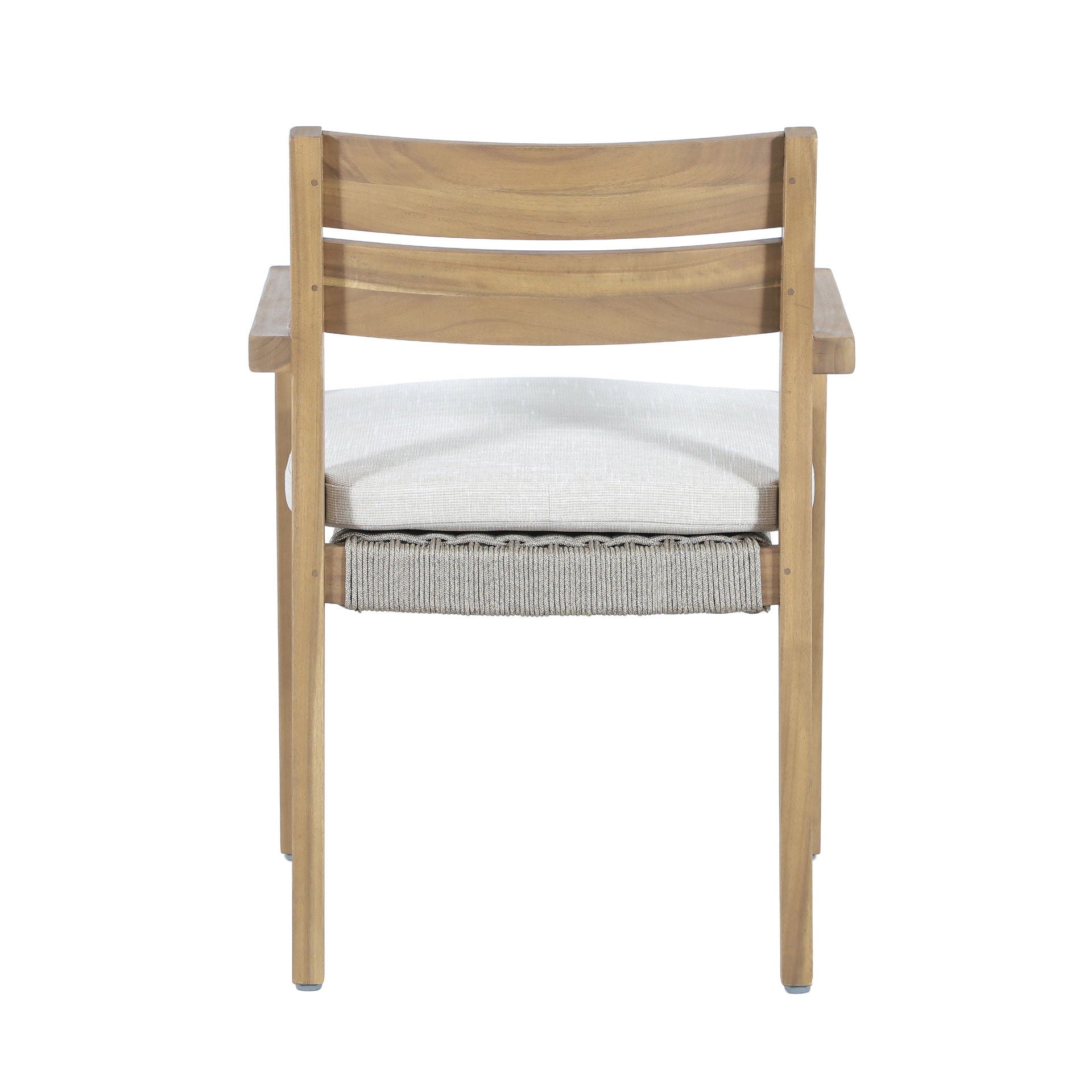 The Arden Dining Chair combines a solid Acacia wood frame with woven wicker backrests and cushioned seating for comfort and durability. Designed to resist outdoor elements, the all-weather wicker maintains its beauty while the padded cushions provide supportive seating. Ergonomic curved backs encourage relaxation, making these chairs perfect for long meals or casual gatherings. Stylish and functional, the Arden dining chairs complement the matching table and elevate outdoor dining spaces.