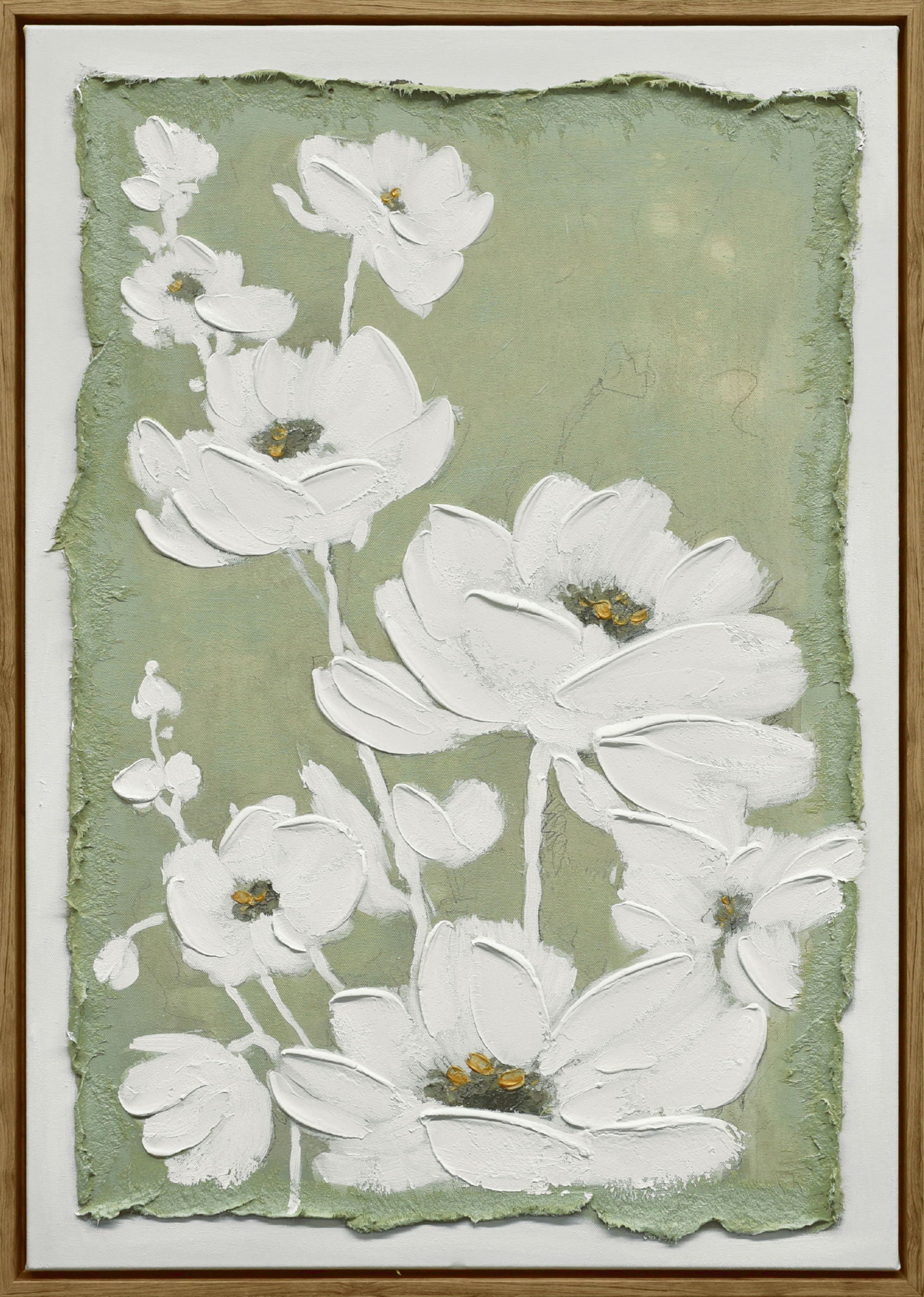 "Blossom Serenity I" Hand-Embellished Canvas In Frame - Green / White