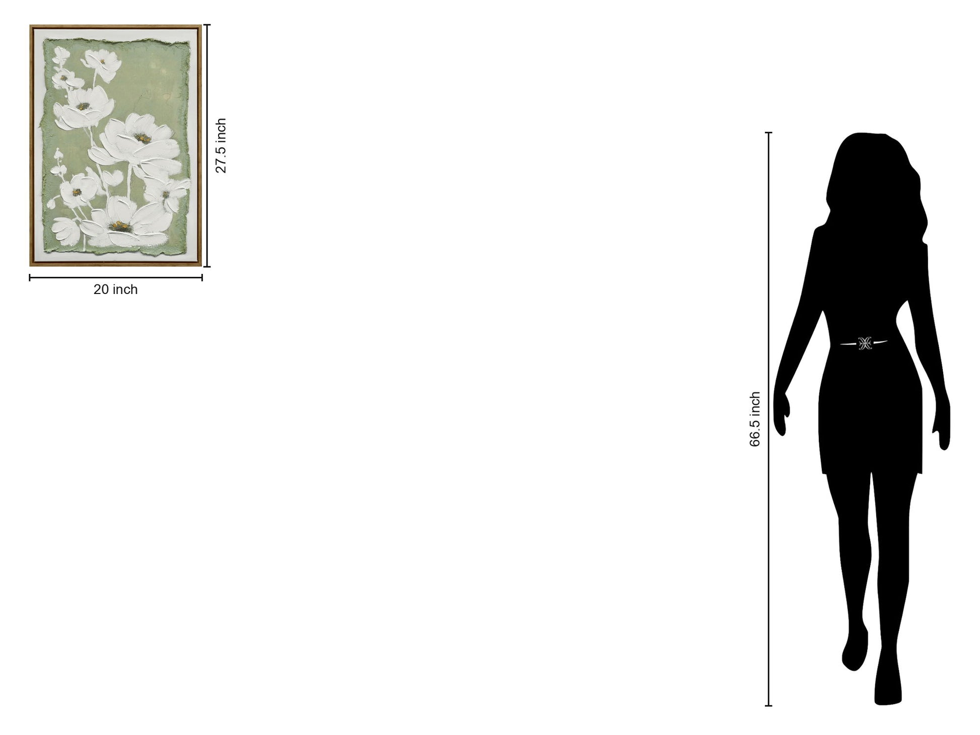 Immerse yourself in the tranquil beauty of 'Blossom Serenity.' This hand-embellished acrylic piece captures the delicate elegance of white blossoms against a soft green backdrop. Perfect for adding a touch of nature's grace to any room, this framed art brings a serene and sophisticated ambiance to your space.