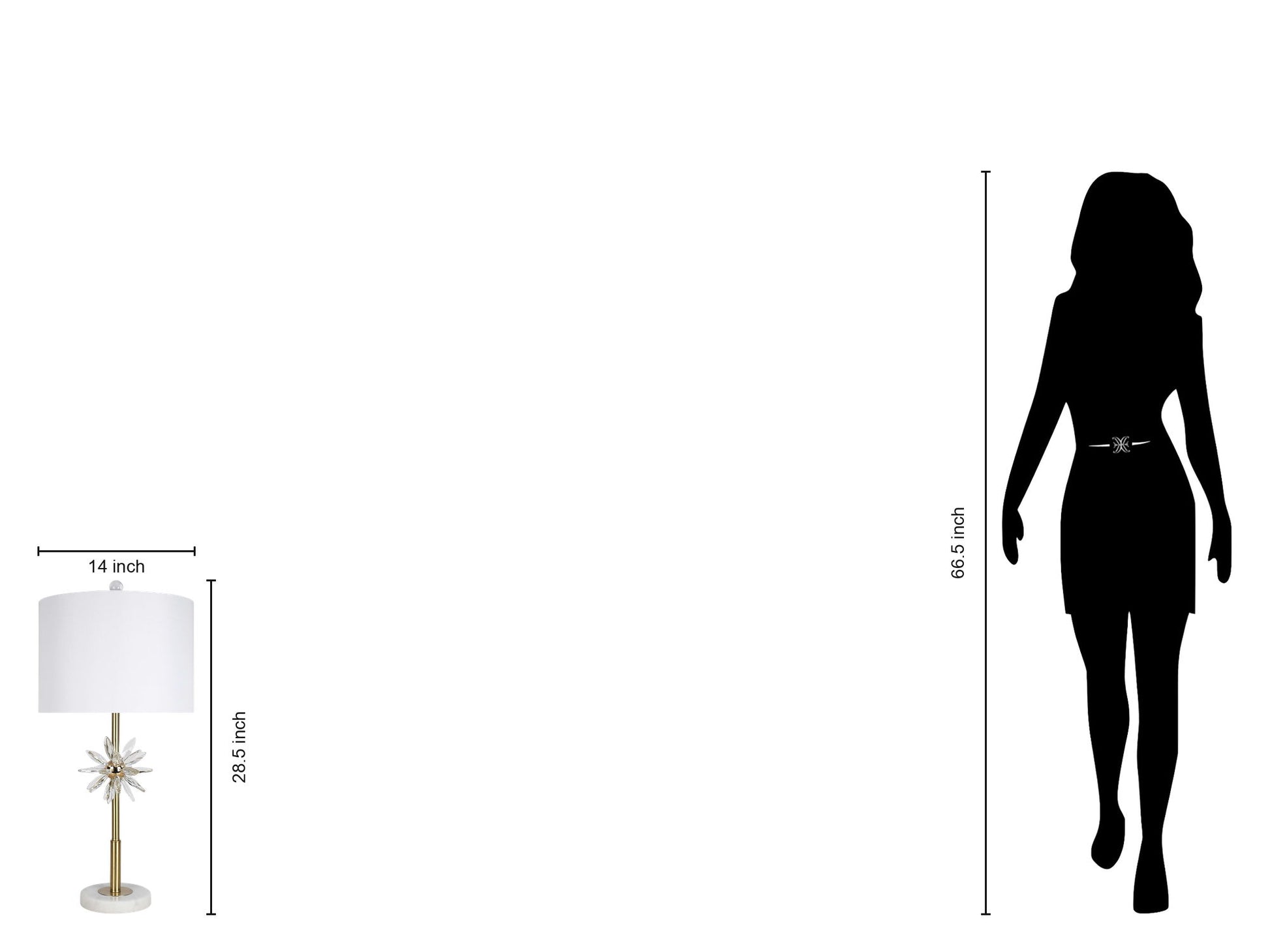 The Crystal Bloom table lamp exudes elegance with its stunning combination of clear crystal and white marble. Its drum-shaped linen shade softly diffuses light, creating a warm and inviting atmosphere perfect for any living room or bedroom. The lamp's statement base and mixed material design make it a focal point, while the 3-way switch offers versatile lighting options.