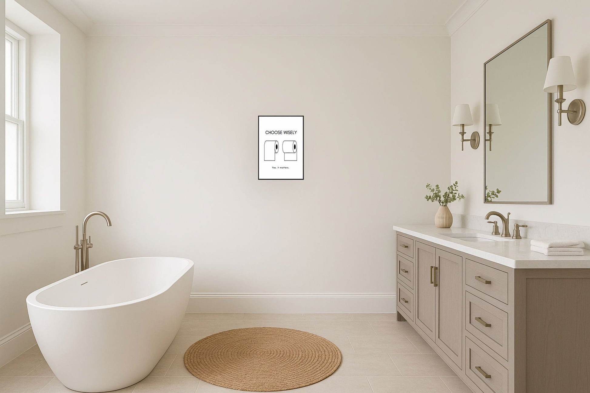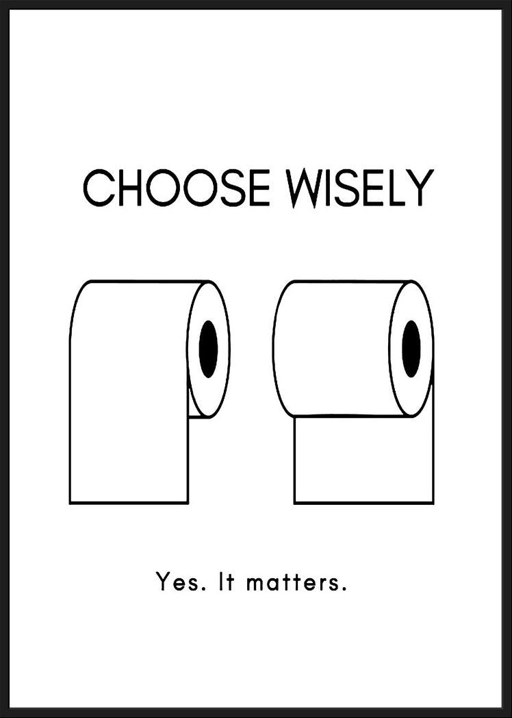 Add a touch of humor to your space with this playful graphic art piece. Featuring a witty take on everyday choices, it's perfect for sparking conversation and laughter. Ideal for bathrooms or any room needing a lighthearted touch.
