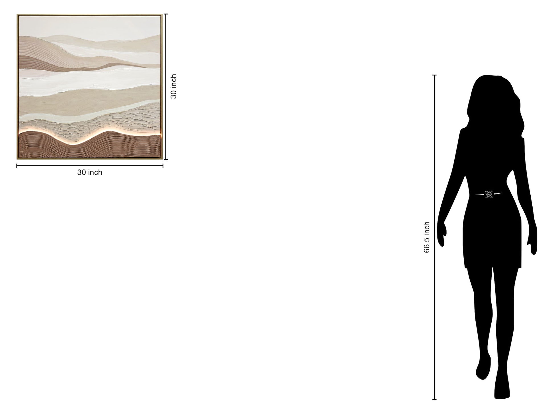 Experience the serene beauty of the desert with this hand-embellished LED artwork. Soft, earthy tones and textured brushstrokes create a calming landscape, enhanced by a gentle glow. Perfect for adding warmth and elegance to any space.