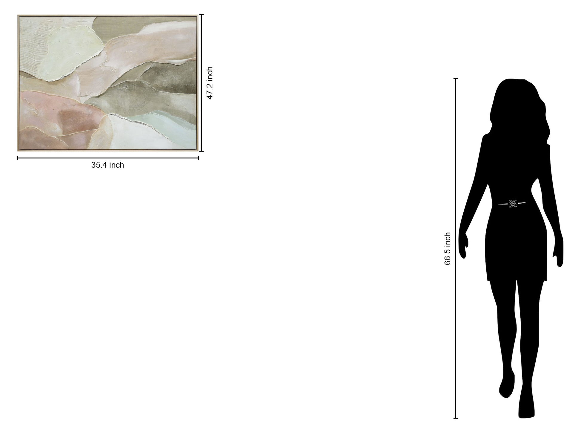"Ethereal Layers" Hand-Embellished Canvas In Frame - Soft White / Muted Green / Taupe
