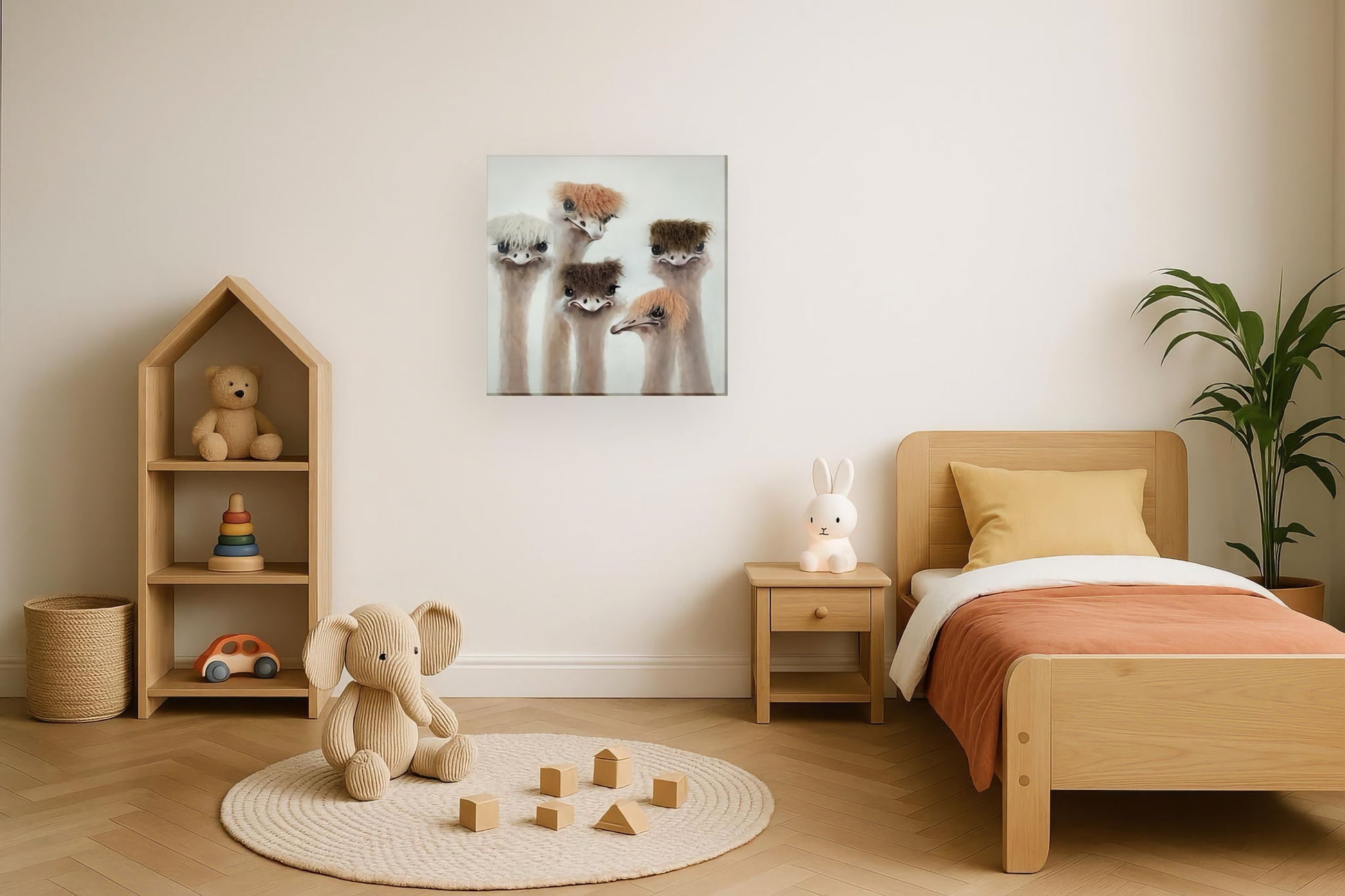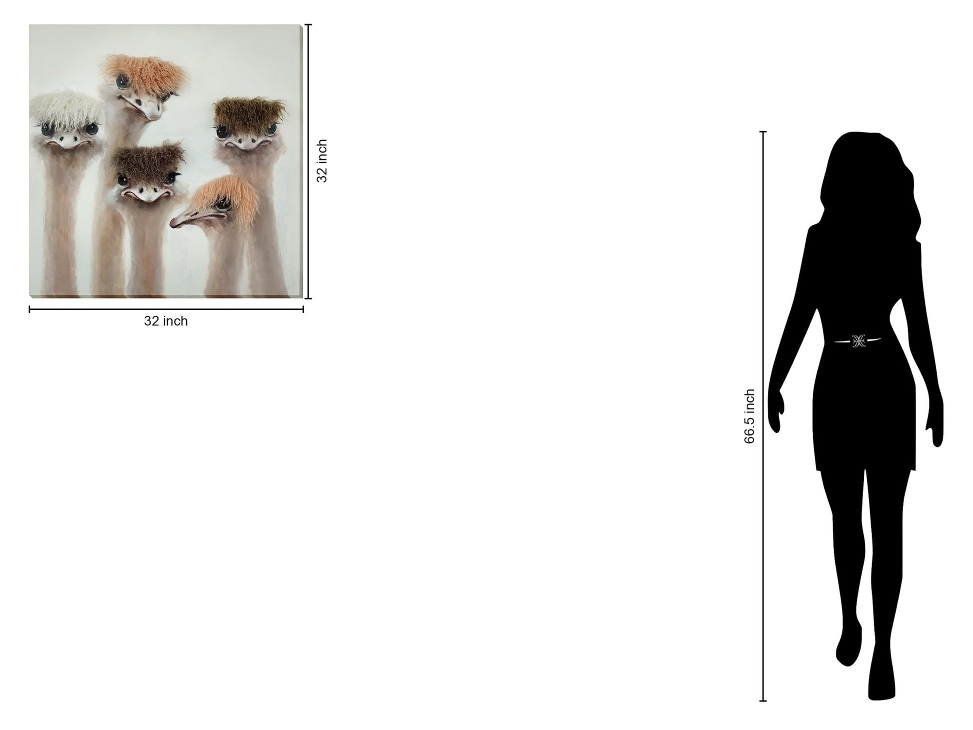 Bring a touch of whimsy to your space with 'Feathered Expressions,' a delightful acrylic painting capturing the quirky charm of ostriches. This hand-embellished piece showcases the unique personalities of these fascinating birds, making it a perfect conversation starter in any room. Ideal for adding a playful touch to your living area or office.