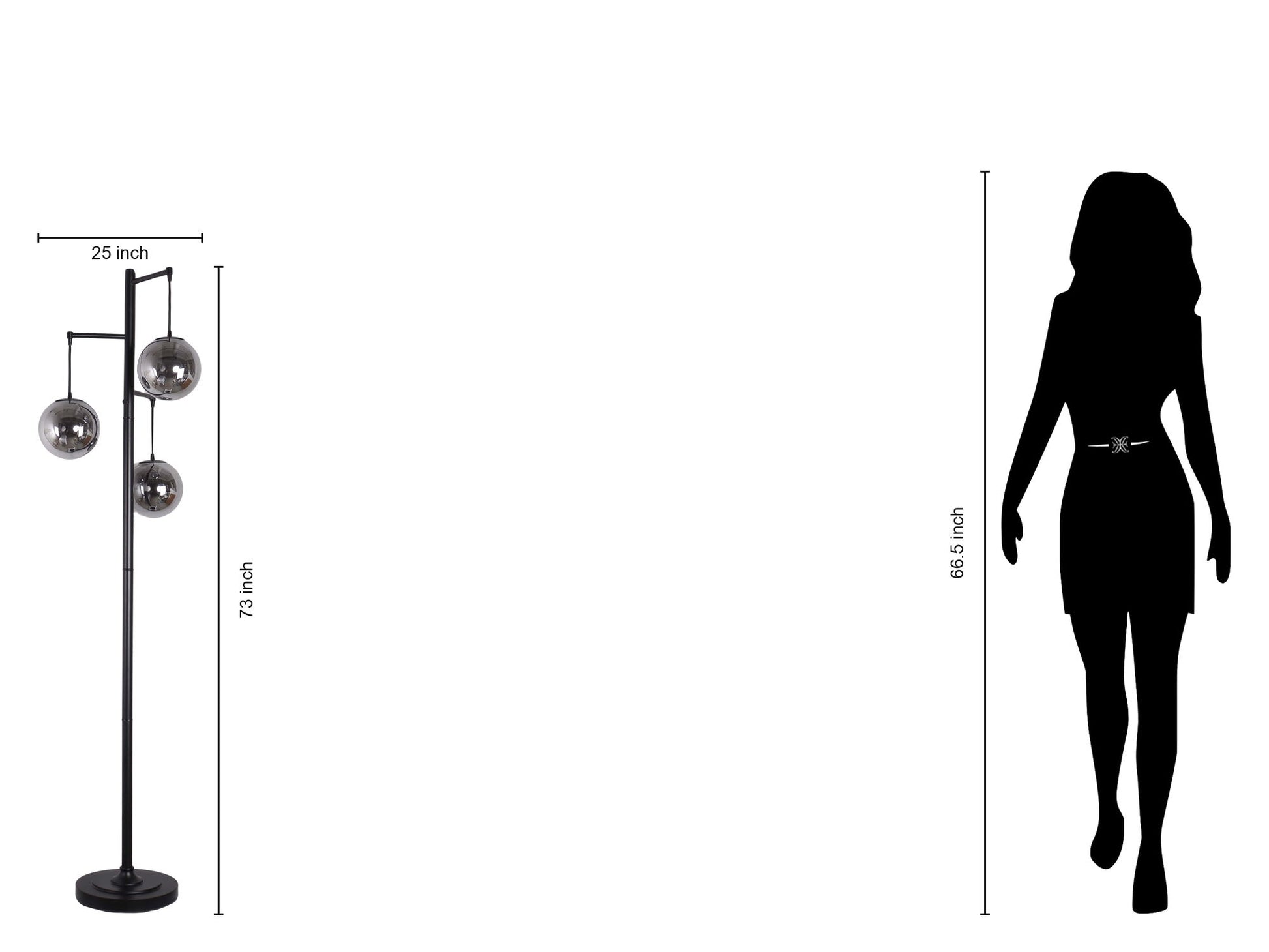 "Globe Cascade" Metal Floor Lamp With Glass Globes - Polished Chrome / Smoked Glass