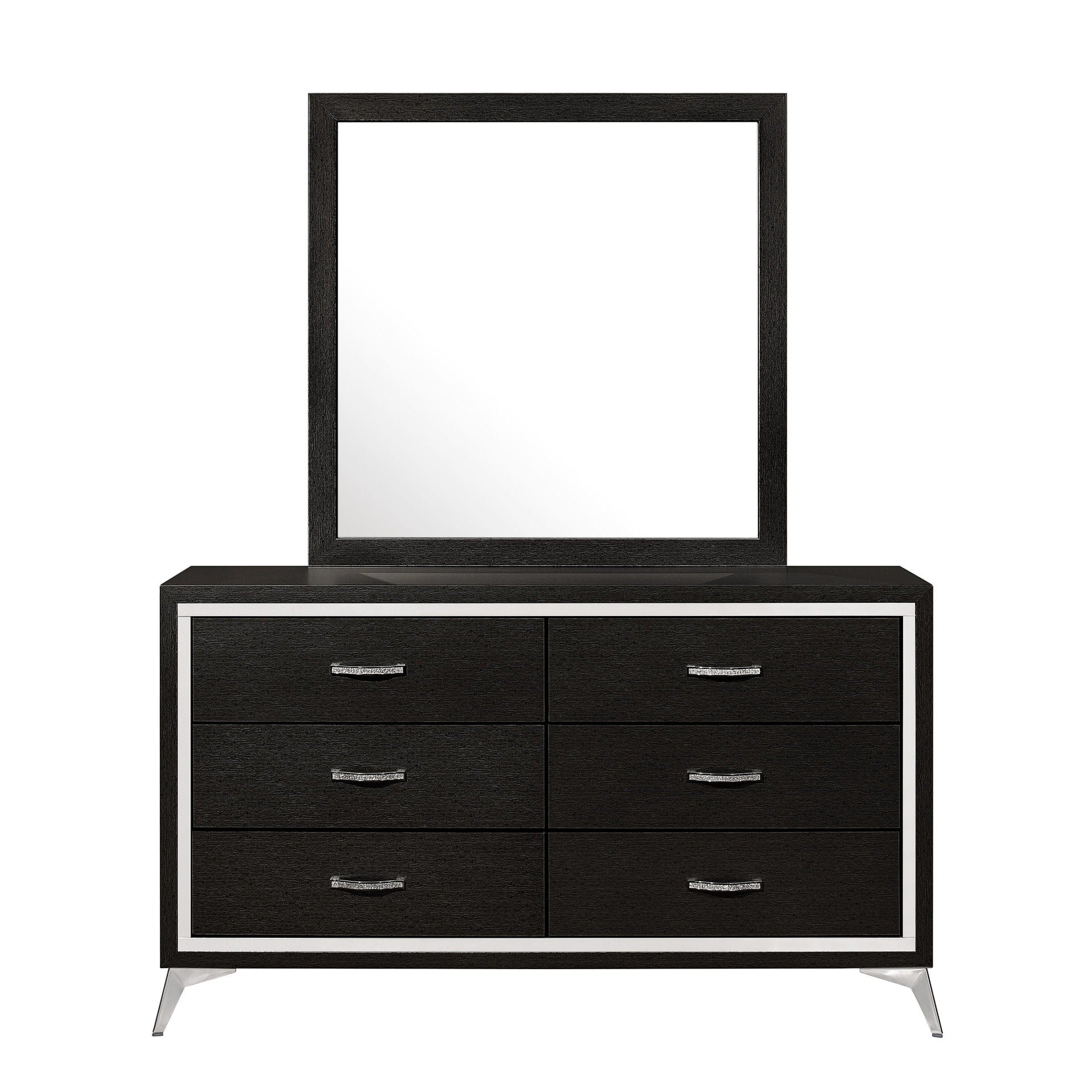 The Huxley Mirror offers a blend of contemporary glam and durable construction for your home. This mirror is carefully crafted from manufactured woods and eco-friendly decorative laminate, ensuring long-lasting quality. Featuring clean lines and a glossy finish, it adds a modern touch to any room. The rich finish provides a sleek, sophisticated look that is both timeless and modern, highlighting the metallic accents and smooth surfaces to create a chic, polished aesthetic. The low-distortion glass ensures a true reflection, making this mirror both functional and stylish.