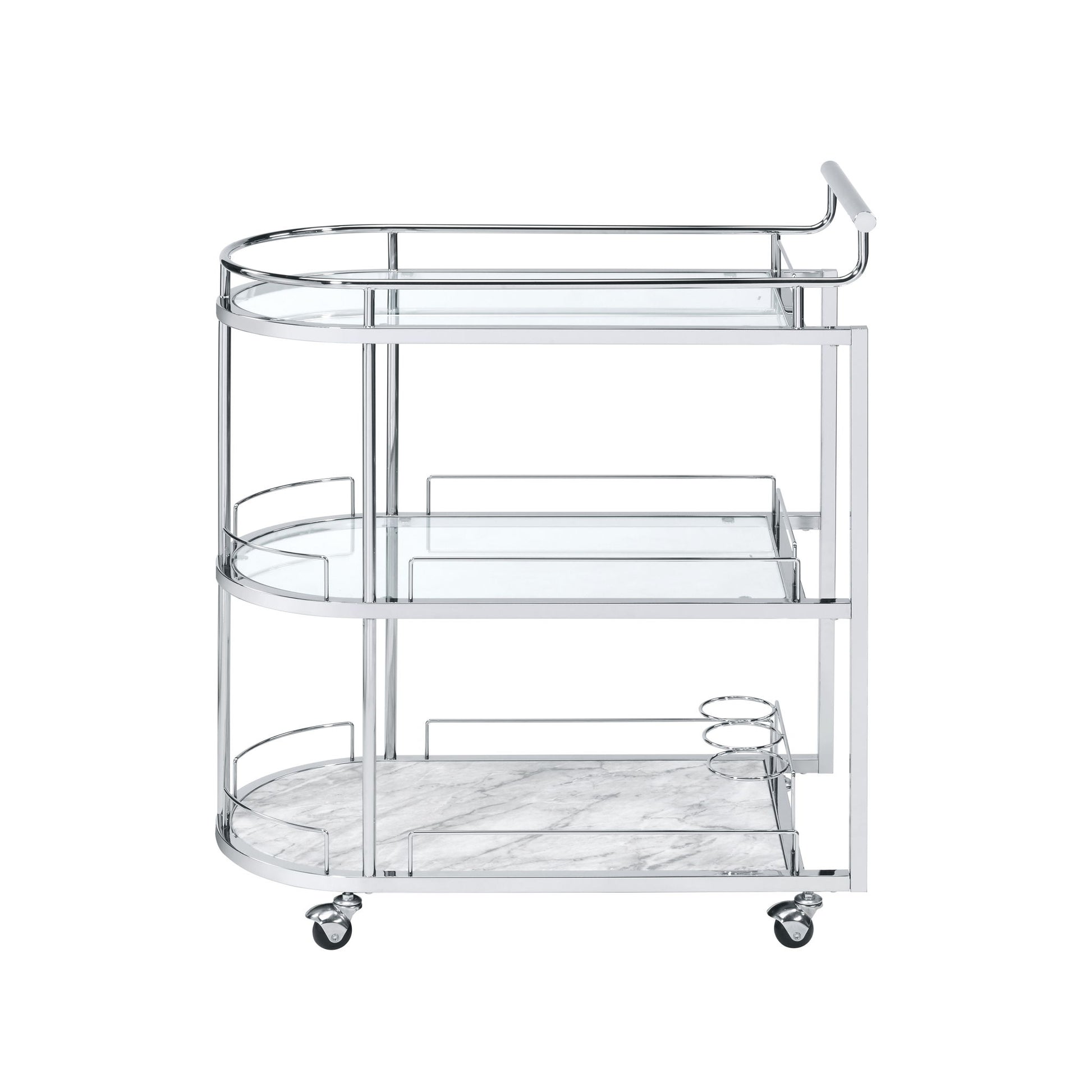 Sarandon - 3-Tier Glass Shelf Metal Bar Cart - Chrome