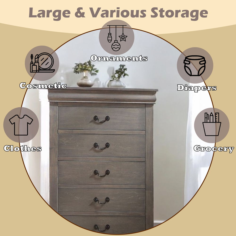 Bring casual elegance into your home with the Louis Phillipe chest. This chest is a piece that offers any bedroom a sophisticated look.