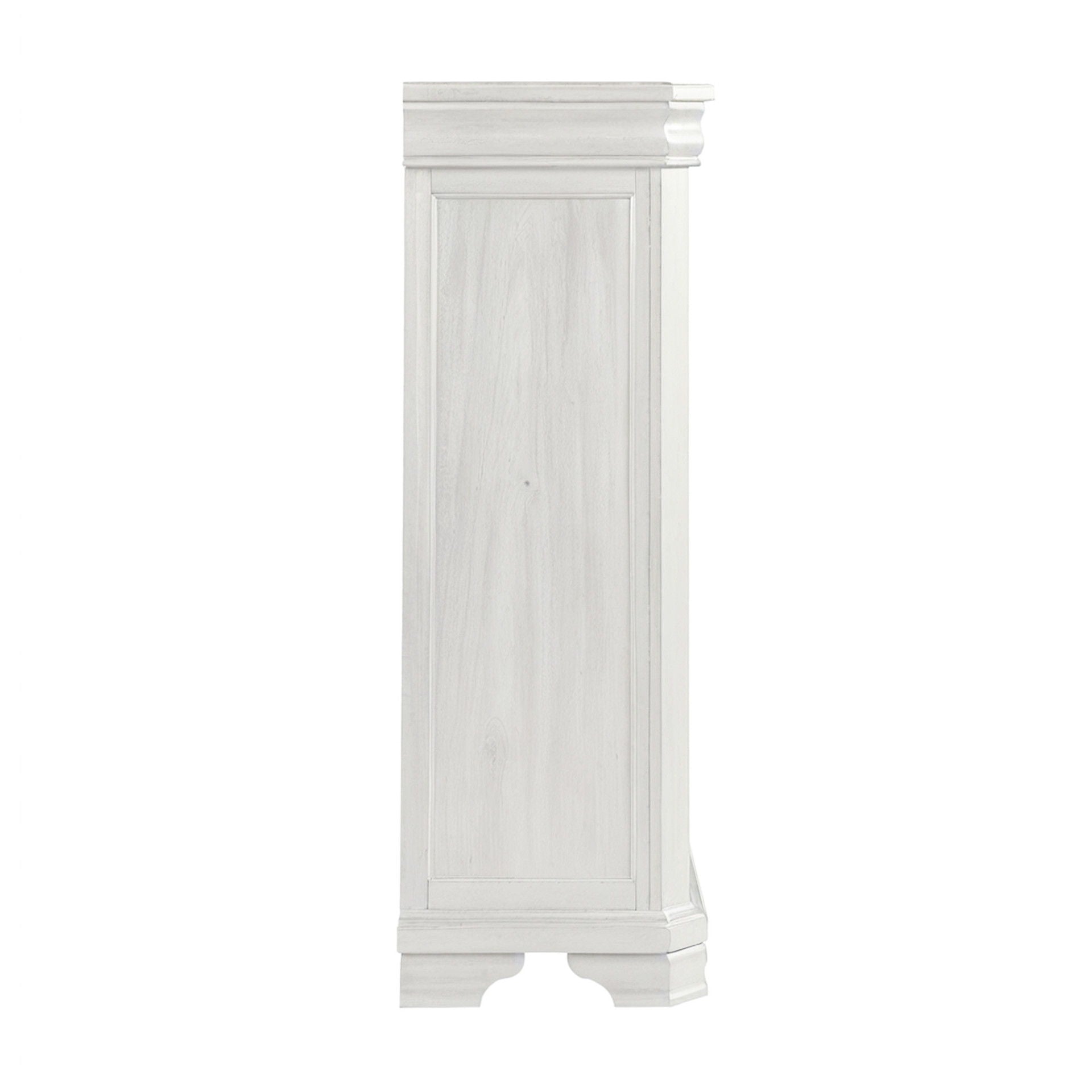 Introducing the Lyndhurst Chest — a harmonious blend of style and functionality for your bedroom. Crafted from solid Acacia, Acacia veneers, and manufactured wood, this chest ensures lasting strength and durability to withstand everyday use. Its heirloom finish, achieved through a meticulous multi-step process, adds depth and character to the wood with mild distressing, burnishing, and glazing. The masterful style of this piece is highlighted by its substantial moldings, bracket feet, and ornate hardware, making it a standout statement piece in any room. Inside, the chest features five spacious drawers crafted with English dovetail joinery, full extension drawer glides, and finished interiors, providing ample storage for clothing and accessories. A discreet velvet-lined drawer is concealed behind the top molding, offering a touch of luxury for delicate items, while the bottom drawer is cedar-lined, ensuring optimal storage for sweaters. Elevate your bedroom decor with the stately sophistication of the Lyndhurst Chest