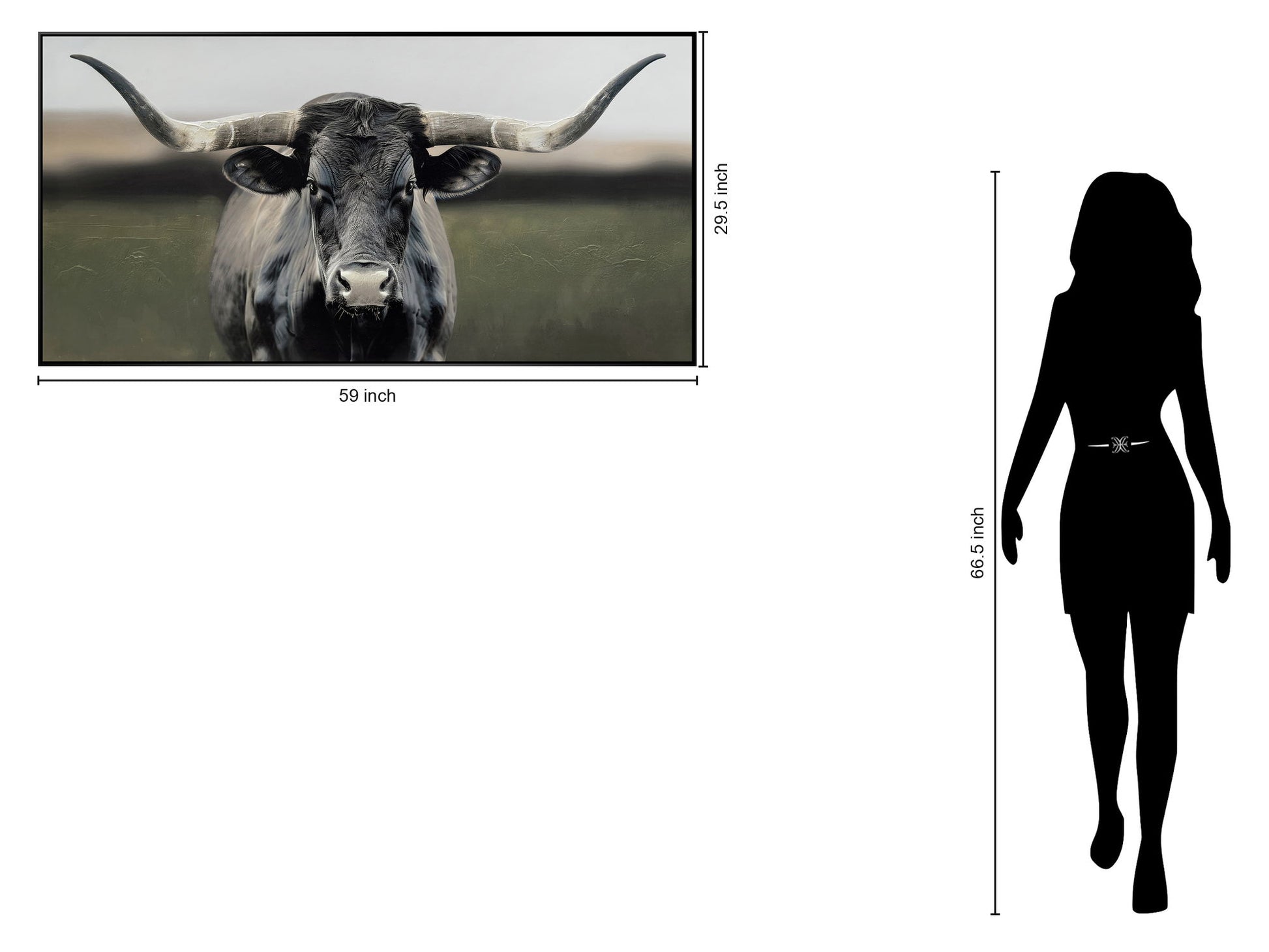 "Majestic Longhorn" Hand-Embellished Canvas In Frame - Gray / White / Green