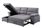 Coming with flexible designs and versatile function, this stunning sectional sofa is comprised of a storage chaise and loveseat with pull-out bed. It's chaise seat lifts up to reveal ample storage for all your clutter. The loveseat section pull out to transform the entire sofa into an spacious sleeping space. Full foam cushions in a gray fabric make the sofa feel very soft and warm, with pillow top armrests for extra comfort. Make smart decor choices with this multifunctional sectional sofa