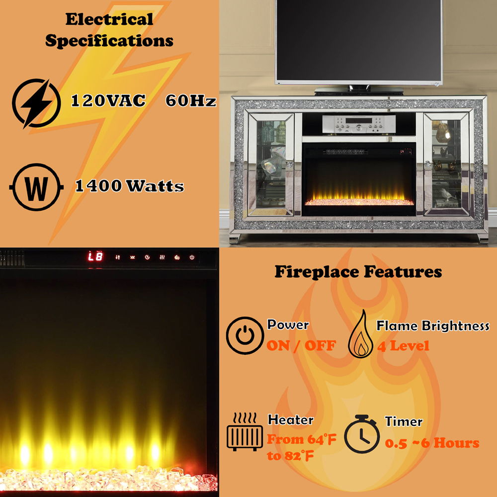 Noralie - 35" TV Stand With Fireplace & LED - Mirrored & Faux Diamonds