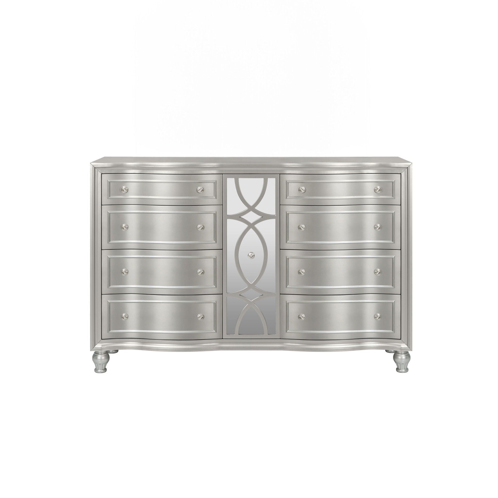 - Glamorous Matte Silver Finish: This luxurious finish not only adds a radiant touch of elegance but also beautifully complements the mirrored panels and shimmering silver drawer pulls, creating a refined and sophisticated look.