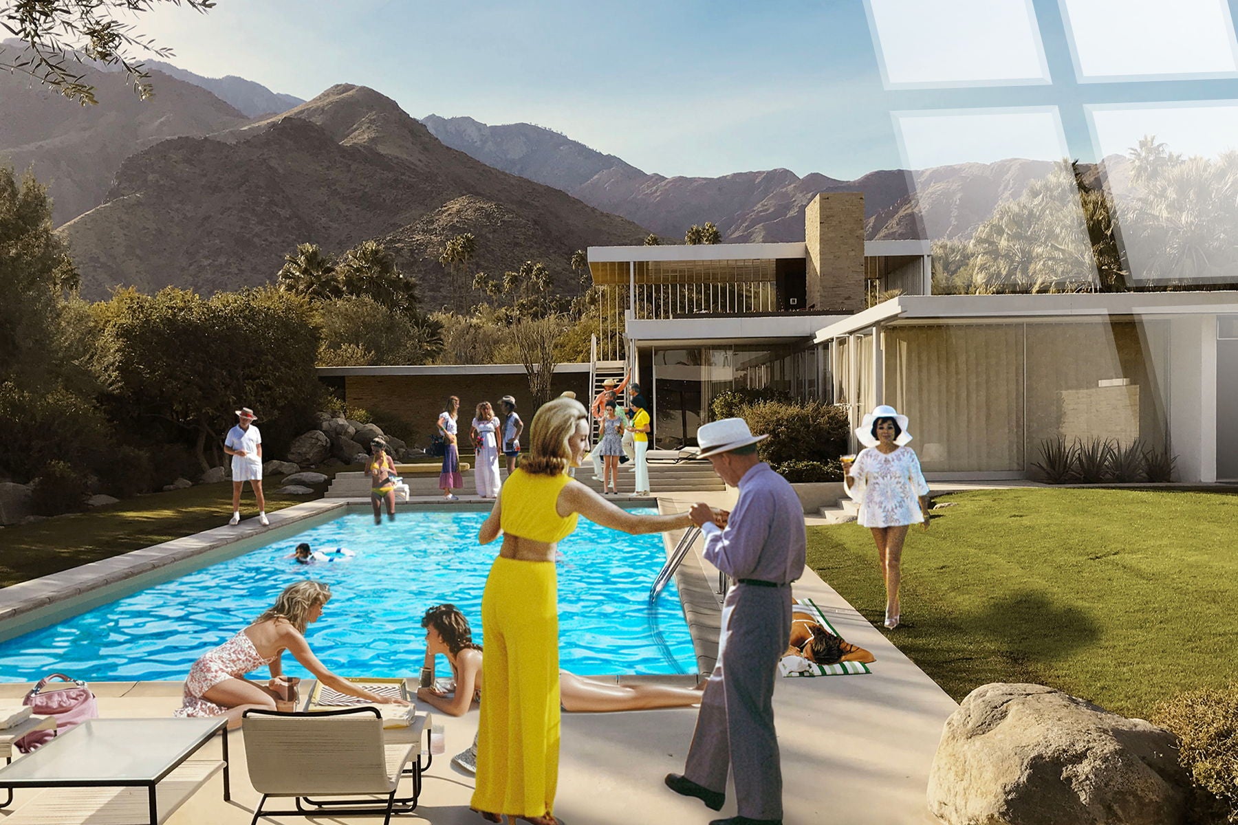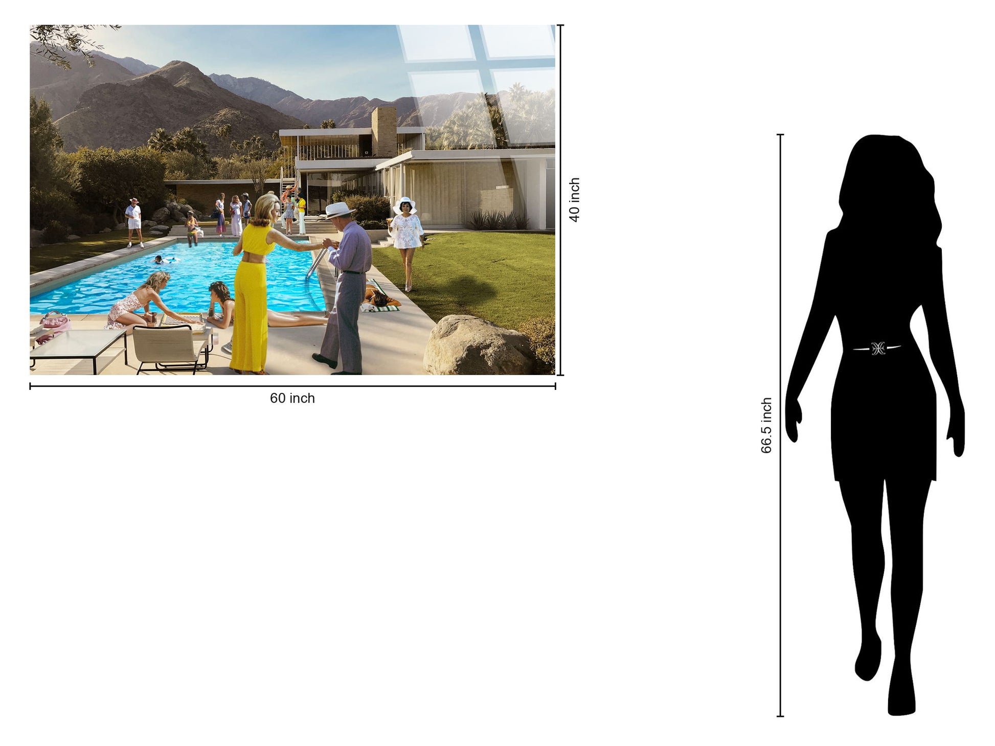 Step into a sunlit world with 'Retro Oasis,' capturing a lively poolside gathering against a backdrop of majestic mountains. This vibrant photograph brings a touch of nostalgia and warmth to any space, perfect for those who cherish timeless elegance and joyful moments. Ideal for living rooms or entertainment areas, it invites viewers to bask in its inviting atmosphere.
