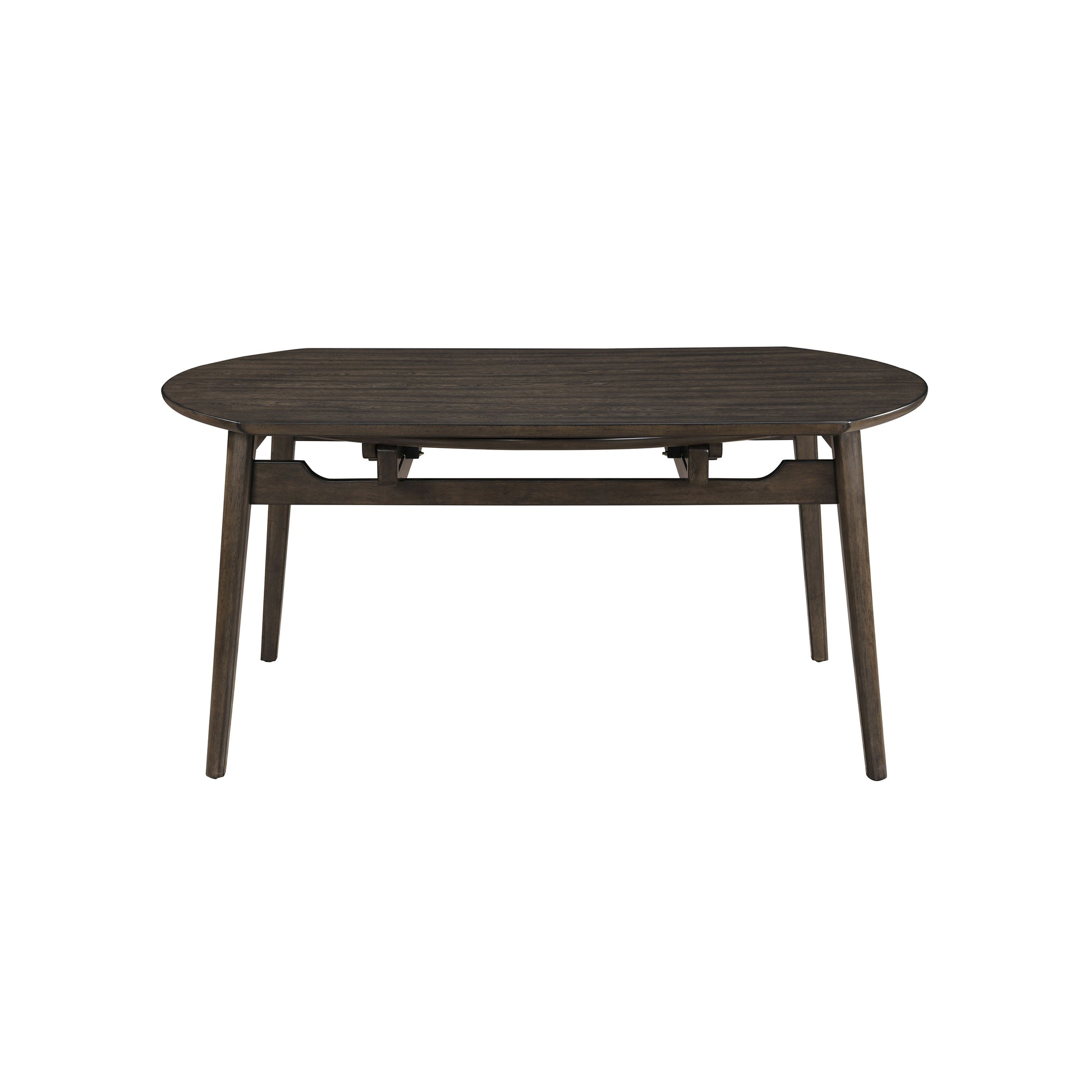 The Rex Mid-Century Modern Wood Dining Set offers a stylish and functional solution for your dining area. This set includes a 65" round dining table with self-storing leaves and chairs. Crafted from solid rubberwood, manufactured woods, and oak veneers, it ensures exceptional stability and longevity. The classic mid-century modern design features a minimalist aesthetic with clean lines, rounded edges, and angled, tapered legs, capturing the timeless elegance of the era. The multi-step finish, hand-rubbed with a clear topcoat, enhances the natural beauty of the wood grain. The chairs provide comfortable seating with softly rounded backrests and resilient foam seat cushions wrapped in 100% easy-care polyester fabric. The innovative round dining table extends with self-storing leaves to provide seating for six, making it perfect for both everyday meals and special occasions. This dining set combines quality construction, classic design, and practical functionality, making it a great addition to any home.