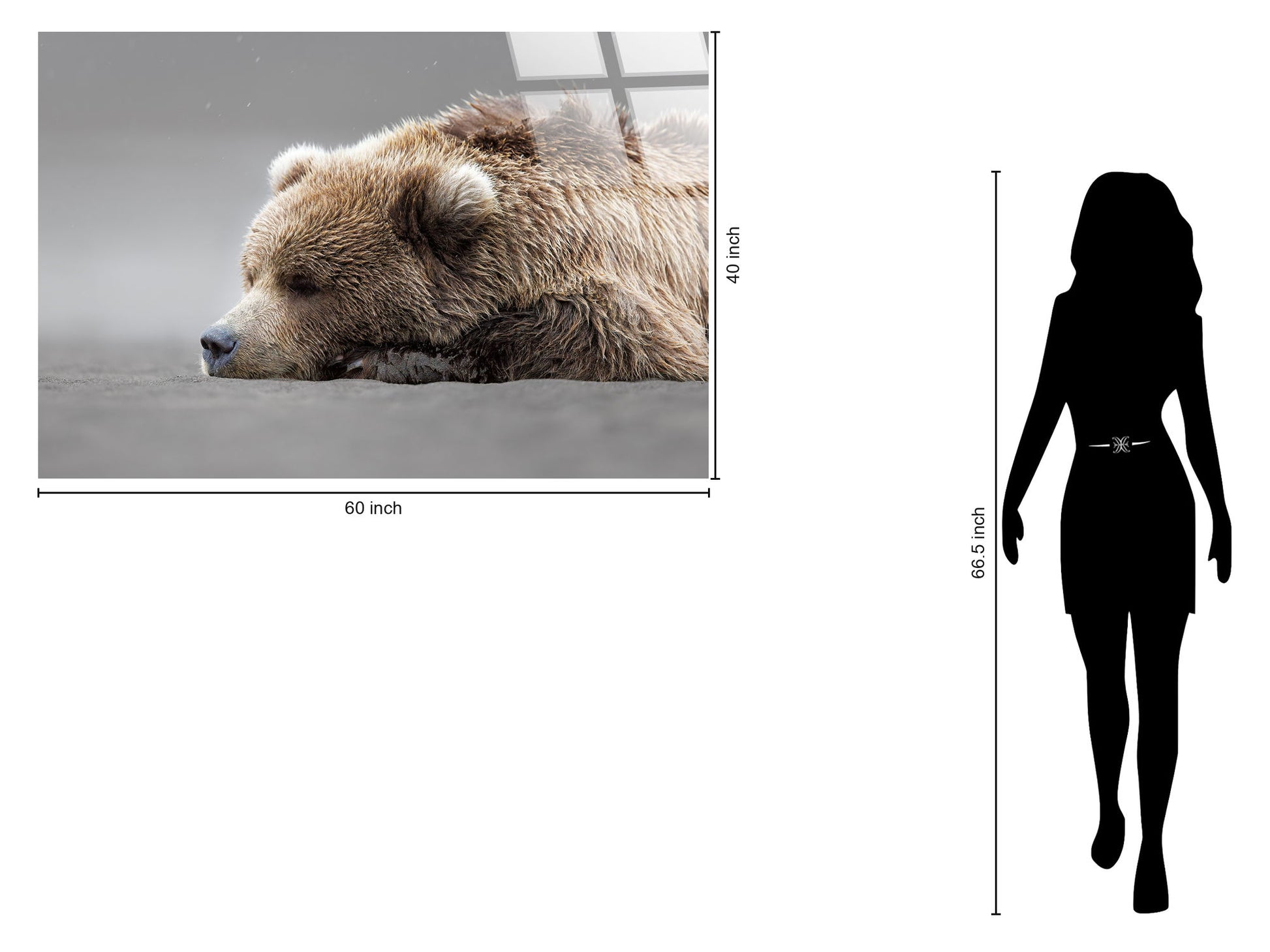 Capture the essence of tranquility with this stunning photograph of a bear in peaceful slumber. The detailed texture of the fur and the serene backdrop create a calming presence, perfect for adding a touch of nature to any space. This frameless, tempered glass piece offers a modern and sleek look, ideal for contemporary settings.